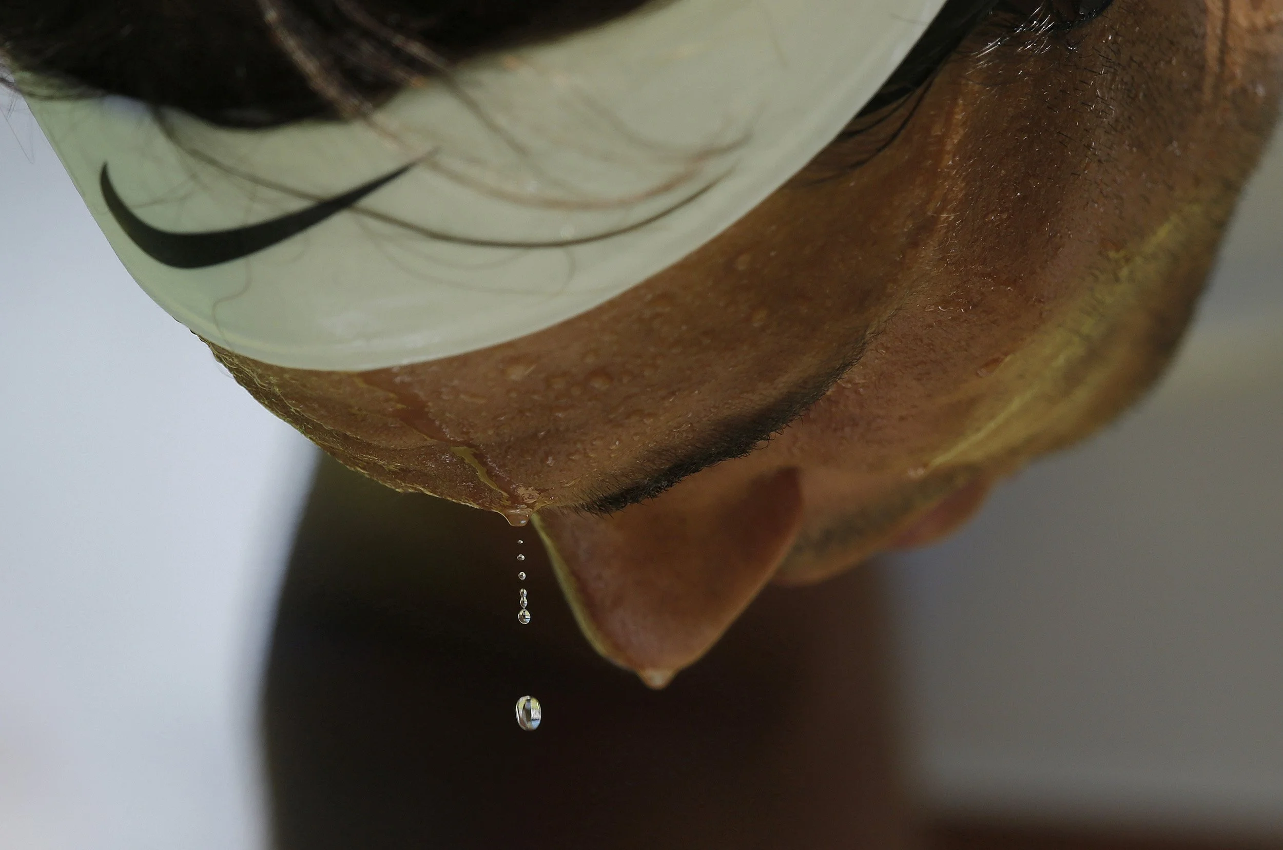 Sweat drops off Rafael Nadal on the hottest day of the year as he struggles in his match with Thomas Bellucci during day two of Wimbledon. London, June 2015