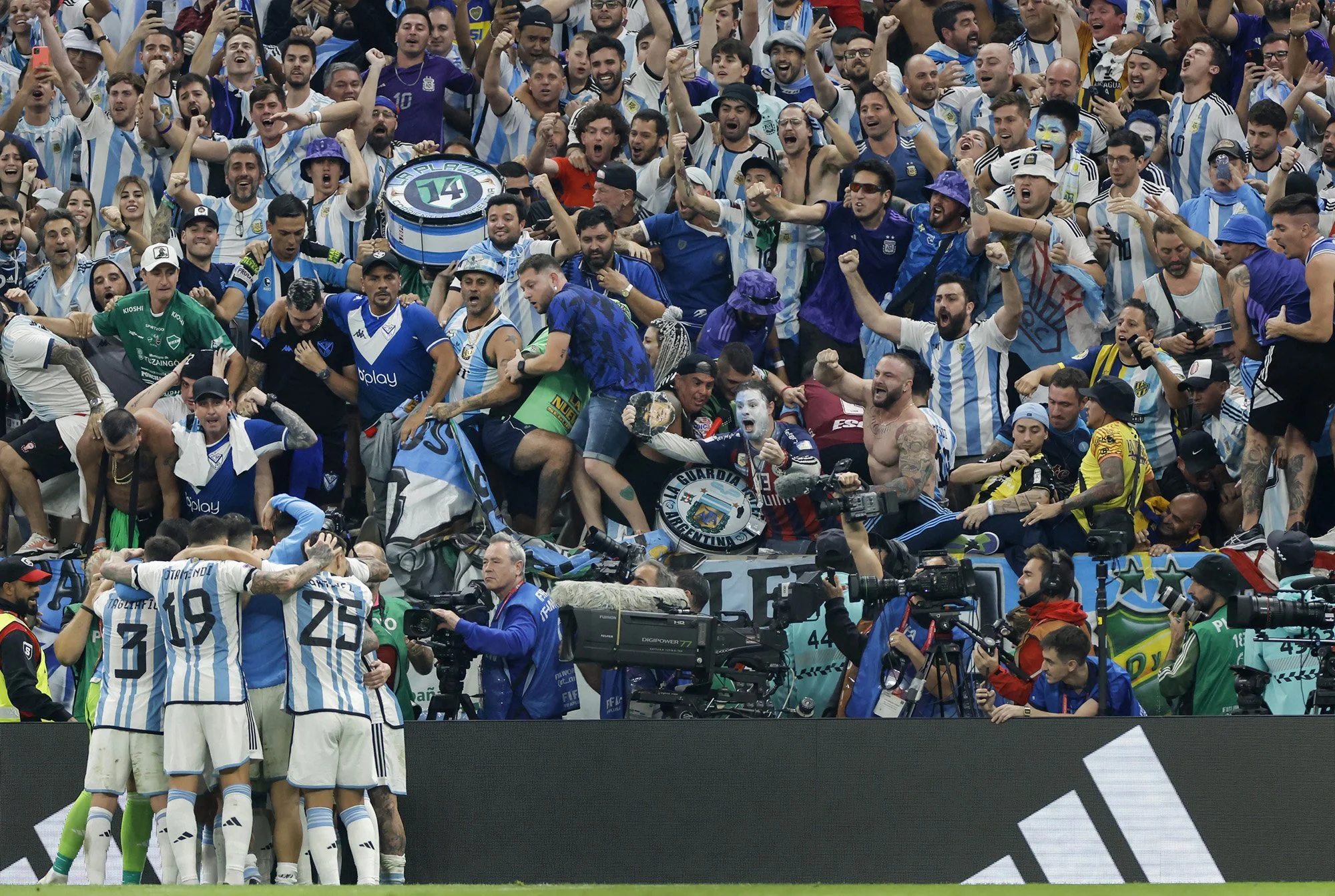 Argentina fans celebrate with the team after scoring a third goal in their semi-final match against Croatia