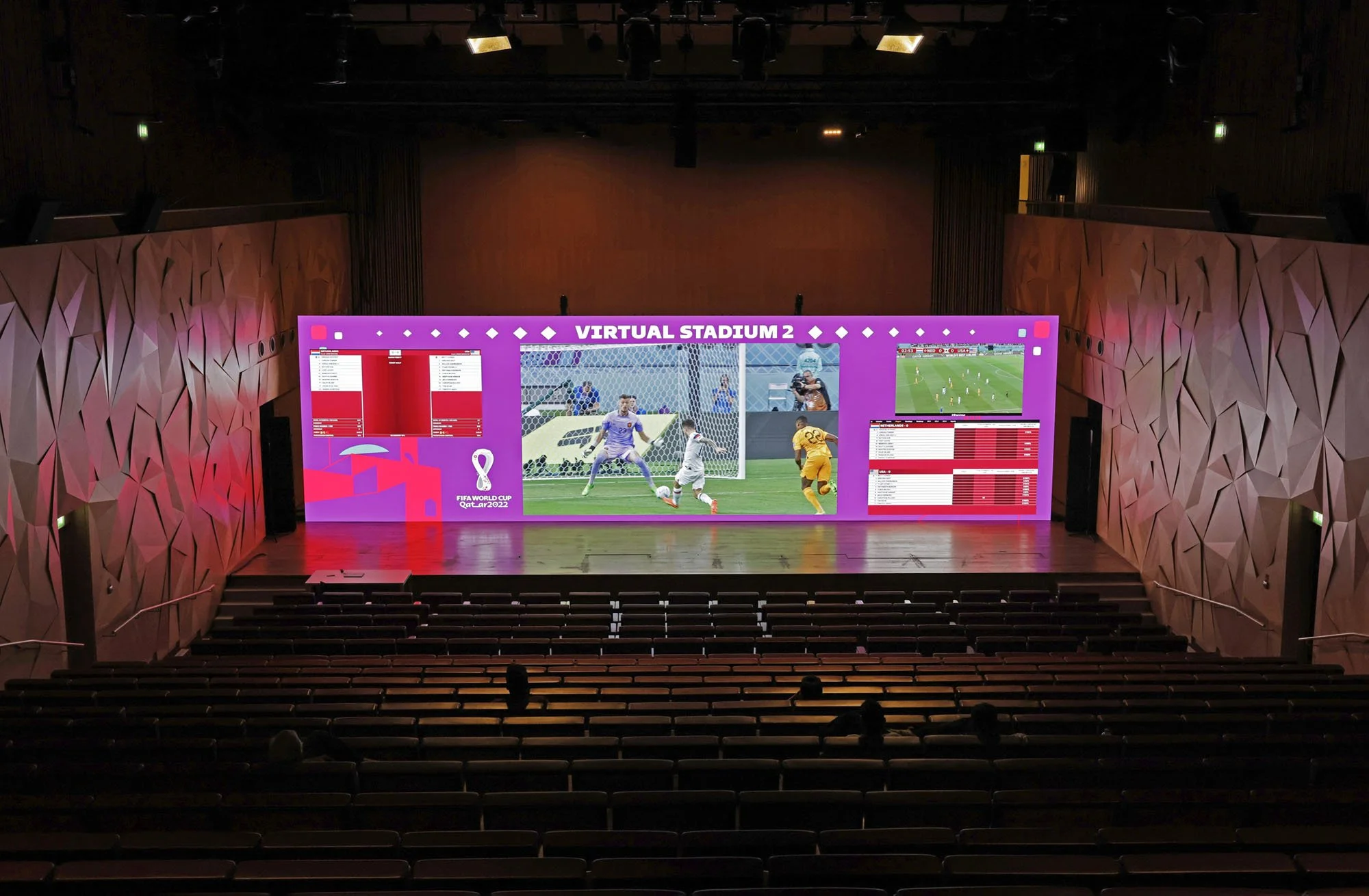 A handful of journalists watch Netherlands v USA in one of FIFA's ‘Virtual Stadiums’ in the Main Media Centre of the Qatar National Convention Centre